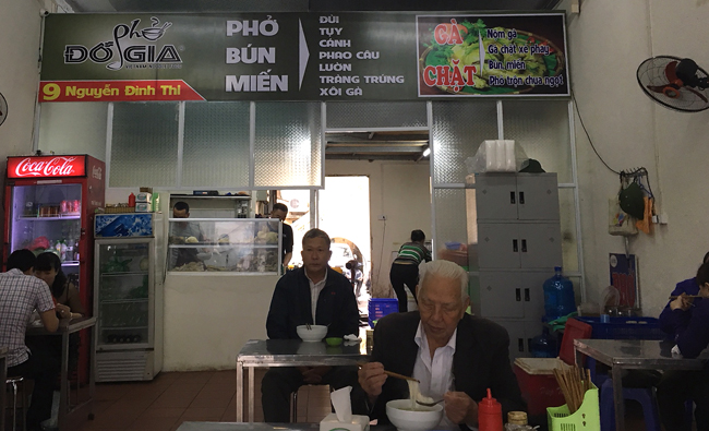 Rẽ từ Yên Ninh của phở Châm ra đường Quán Thánh, chạy đến cuối đường sẽ gặp con đường ven hồ Tây lãng mạn mang tên Nguyễn Đình Thi. Căn nhà đánh số 9 với biển phở Đỗ Gia ngay đầu đường là một hiệu phở gà cũng nức tiếng trong giới sành phở Hà Nội.