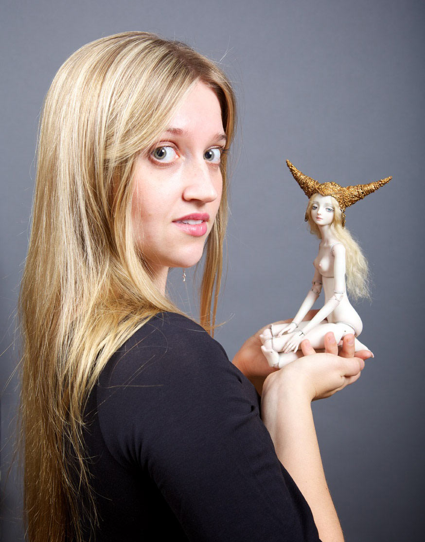 Chân dung tác giả trẻ xinh đẹp Marina Bychkova bên cạnh một tác phẩm tí hon