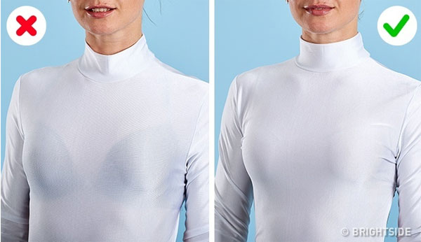 Mặc áo lót đen bên trong áo trắng từng là xu hướng một thời nhưng cách mix đồ này đã không còn thịnh hành. Hãy chọn đồ lót màu nude khi diện đồ sáng màu.