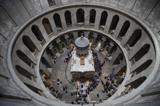 Mọi người xếp hàng vào thăm khu hầm mộ của Chúa Jesus - Ảnh: AP