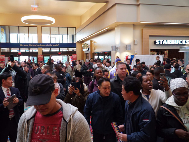 Một trung tâm mua sắm trị giá 64 triệu USD rộng gần 30.000 m2 cũng đã được khai trương tại doanh trại Humphreys hồi đầu tháng 11, bày bán tất cả các mặt hàng từ thực phẩm tới tivi và thậm chí có cả quán cafe. (Ảnh: Quân đội Mỹ)
