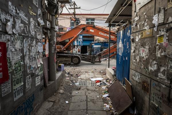 Tàn tích của một tòa nhà cũ bị phá hủy gần đường Vành đai 4 ở đông nam Bắc Kinh cho thấy sự phát triển theo hướng hiện đại hóa của thành phố. Cư dân ở các khu chung cư cũ này phần lớn là công nhân và lao động nhập cư. Họ bị chính quyền Bắc Kinh yêu cầu di dời trong thời gian ngắn. Sau vụ hỏa hoạn ở phường Tân Kiến làm 19 người thiệt mạng, chính quyền Bắc Kinh cho biết họ phải hành động nhanh "để ngăn chặn thảm họa tái diễn".