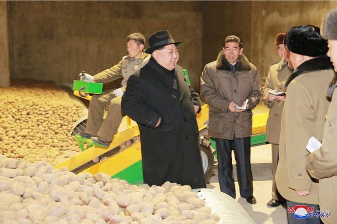 Giữa thời điểm tình hình bán đảo Triều Tiên căng thẳng sau khi Triều Tiên thử tên lửa Hwasong-15. Lãnh đạo Triều Tiên Kim Jong Un đi thăm nhà máy chế biến khoai tây. Ông Kim Jong Un xuất hiện với hình ảnh cười tươi rói.