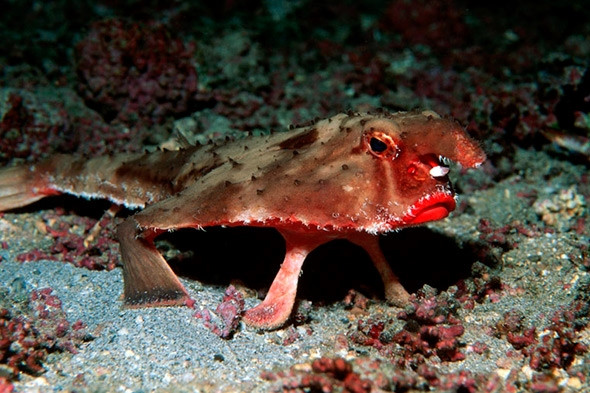 Loài cá dơi môi đỏ là một trong những loài cá kỳ lạ dưới đáy đại dương, không chỉ có ngoại hình khác thường, loài cá này còn có tính cách và kỹ năng chẳng lẫn thể lẫn được với những loài động vật khác. (Nguồn Amusing Planet)