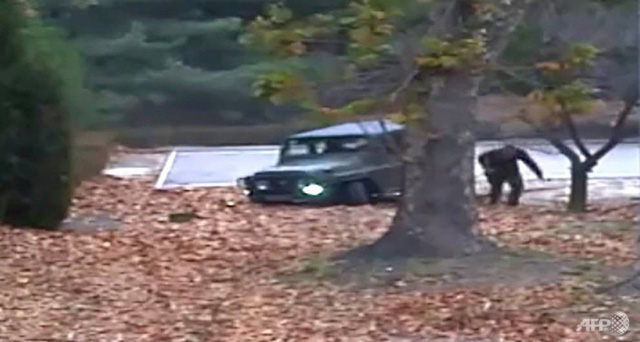 Binh sĩ Triều Tiên lái xe đào tẩu qua khu vực biên giới với Hàn Quốc hồi tháng 11 (Ảnh: AFP)