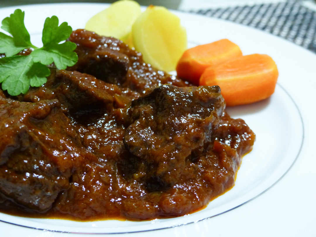 Cho hết hỗn hợp nước sốt trên và thịt bò vào nồi áp suất hầm trong khoảng 20 phút là thịt sẽ chín mềm.