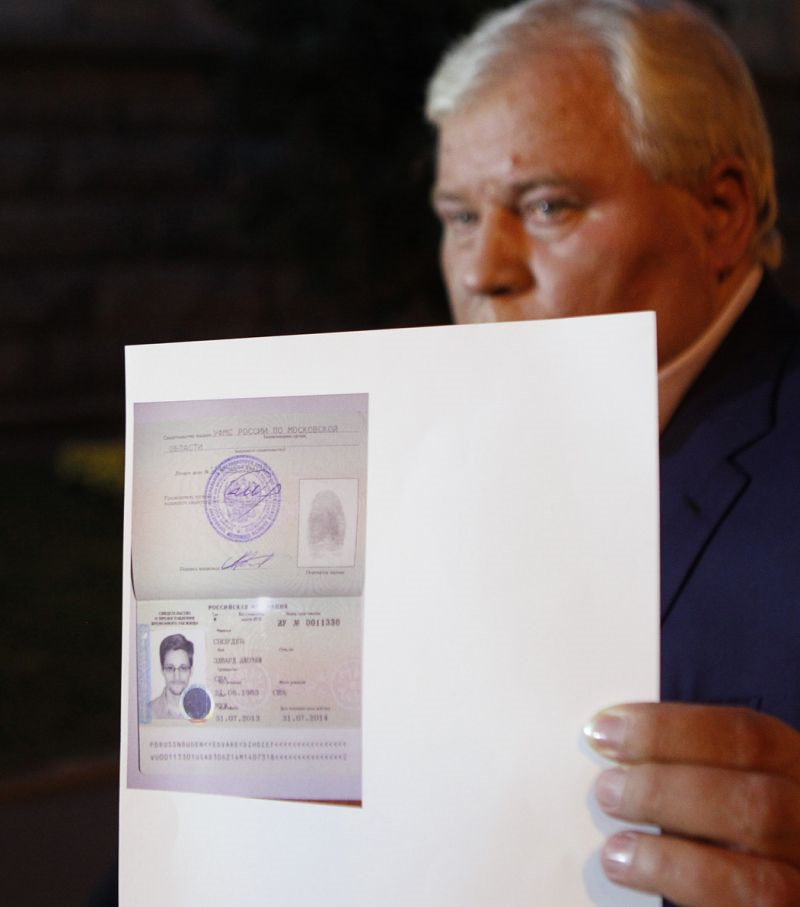 Giấy phép tị nạn của Snowden tại Nga từ tháng 8/2013. Ảnh: Yahoo.Có thể trở thành công dân Nga