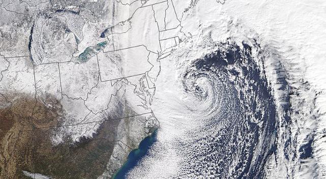 Hiện nay, nước Mỹ đang bị cơn bão tuyết tấn công khiến nhiệt độ giảm xuống tới âm 50 độ C. Ảnh NASA