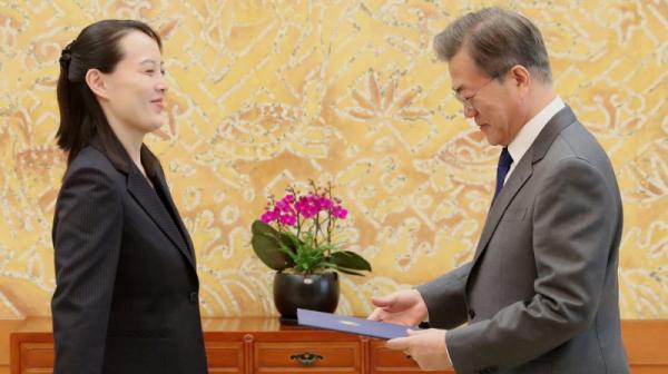 Bà Kim Yo-jong đã giữ một cặp tài liệu màu xanh khi bà đến văn phòng tổng thống Cheong Wa Dae để gặp mặt ông Moon Jae-in. Điều này khiến giới phân tích nhận định rằng bà có thể mang một lá thư của nhà lãnh đạo Triều Tiên tới cho ông Moon.