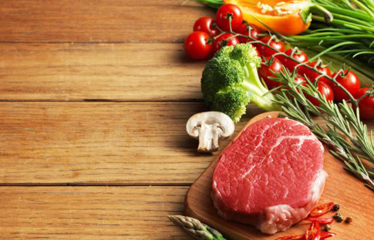 Thịt nạc và các loại rau quả giúp mắt sáng và khỏe mạnh. Ảnh minh họa