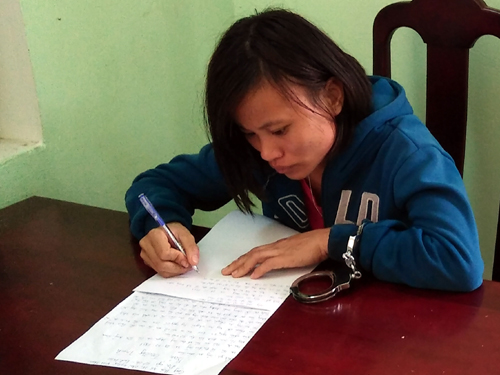 Hằng tại cơ quan điều tra. Ảnh: H.T