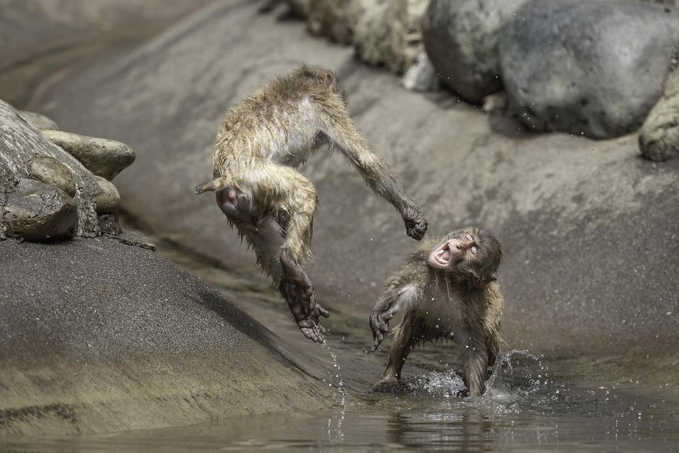 Những bức ảnh dưới đây cho thấy những con khỉ Nhật Bản, hay còn được gọi là khỉ tuyết, vui chơi thỏa thích tại Sở thú Tama ở Tokyo.