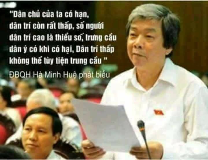 Thưa ĐBQH,các ông thường nói rằng ĐBQH là do dân bầu ra mà bây giờ ông lại nói rằng người dân trình độ dân trí còn thấp ,vậy chất lượng của các ông như thế nào ???