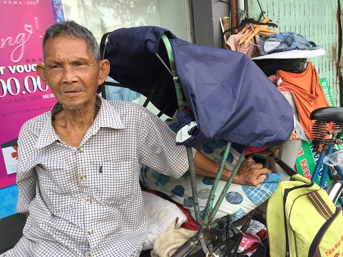 Ông ngủ ngoài đường suốt đêm. Ông không nhà cửa, vợ con. Chỉ một mình, ông có mặt tại đây hàng chục năm nay và trở thành người quen của khu vực này. Không còn chạy xe, hàng ngày ông vẫn được bà con thương tình người cho cái bánh, cái kẹo, người cho vài chục. Có lần có người cho ông 5 gói mì. Lúc ngồi buồn ông lấy ra ăn sống chứ làm gì có bếp núc mà nấu. Nhìn ông nhai, hàm răng trệu trạo thấy rất tội nghiệp...