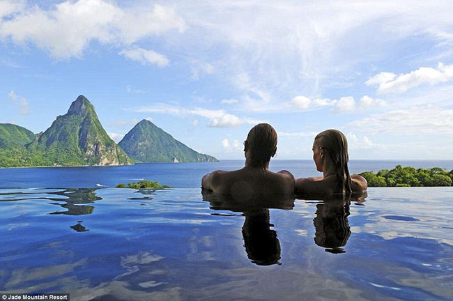 Núi lửa Pitons hiện không còn hoạt động, thế nên nơi này trở thành điểm đến để chiêm ngưỡng cảnh quan hùng vỹ trên đảo Caribe. Khách sạn cao cấp Jade Mountion nằm dối diện với ngọn núi lửa này có một hồ bơi sang trọng tuyệt vời, du khách có thể thoải mái ngâm mình trong làn nước mát rượi và ngắm nhìn núi Pitons trước mặt.