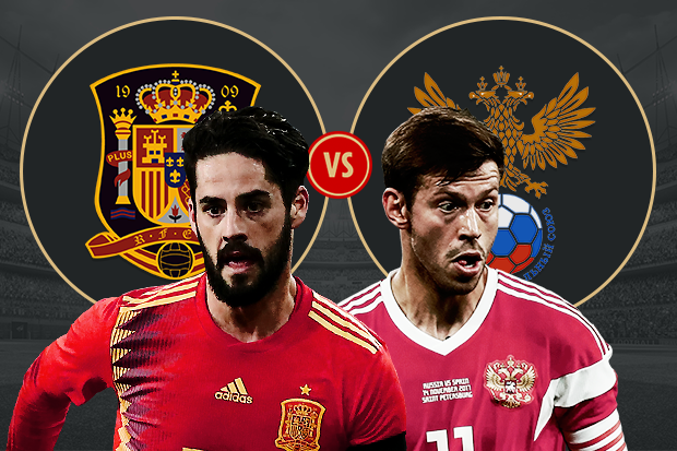 Hồi tháng 11/2017, hai đội đã giao đấu với nhau trong trận giao hữu ở Saint Petersburg. Kết quả, Nga hòa Tây Ban Nha 3-3, trong 90 phút mà Smolov và Sergio Ramos mỗi người lập một cú đúp.