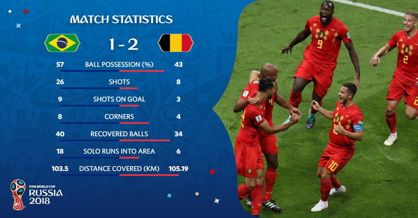 "Sự khác biệt giữa hai đội là gì? Thực tế là chúng tôi chưa giành được World Cup nào", Roberto Martínez, huấn luyện viên trưởng Bỉ giải thích. Ông nói tiếp "Hãy ghi thêm hai bàn nữa !!!"