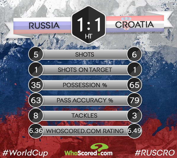 Trận tứ kết cuối cùng World Cup 2018 giữa Nga và Croatia sắp diễn ra. Nga và Croatia đã gặp nhau 3 lần trong quá khứ, Nga chưa thắng được trận nào, Croatia thắng 1.