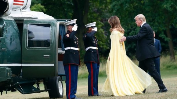 Trong chuyến thawmchinhs thức Anh, vợ Tổng thống Mỹ Donald Trump - bà Melania Trump gây ấn tượng đặc biệt khi khoác lên người chiếc đầm dạ hội cao cấp. Bà trở thành tâm điểm của mọi ánh nhìn khi xuất hiện bên chồng trong trang phục đầm dạ hội cao cấp màu vàng. Những có nhiều ý kiến tranh cãi xung quanh chiếc đầm này.