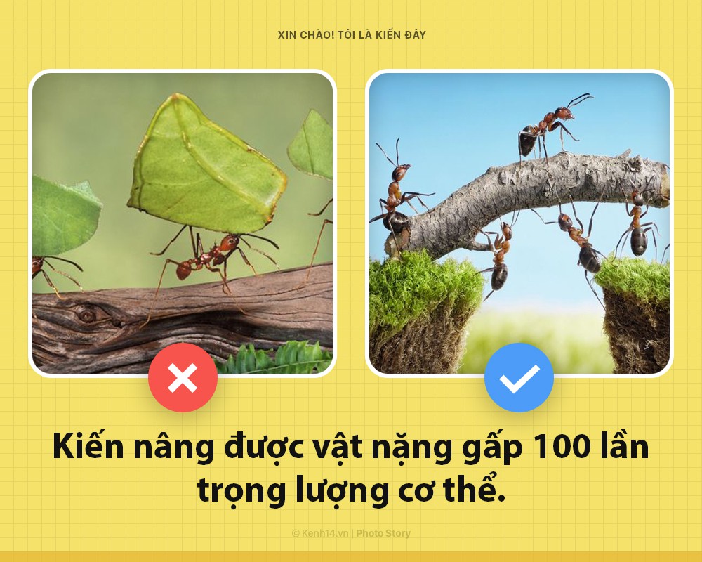 Mỗi thành viên của họ nhà kiến đều có thể nâng vật nặng gấp 10 - 50 trọng lượng cơ thể. Có ông thậm chí nâng được cả trăm lần cơ. Nếu quy đổi sang đơn vị của loài người, thì một người nặng 50 cân sẽ nâng được vài con voi lận.