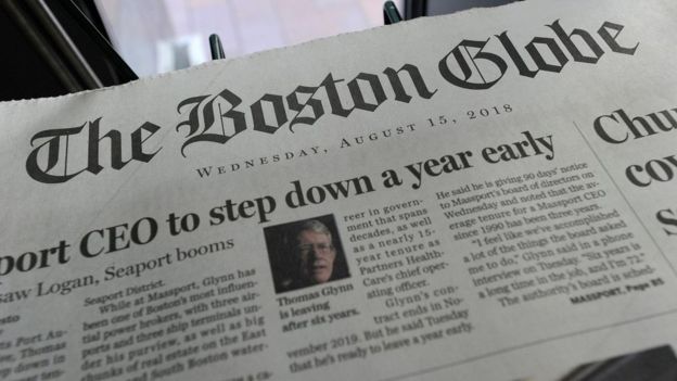 Tờ The Boston Globe ra lời kêu gọi hồi tuần trước, theo đó muốn cả nước lên án "cuộc chiến bẩn thỉu" của tổng thống chống lại truyền thông, với việc sử dụng hashtag #EnemyOfNone (Không phải là kẻ thù của bất kỳ ai).
