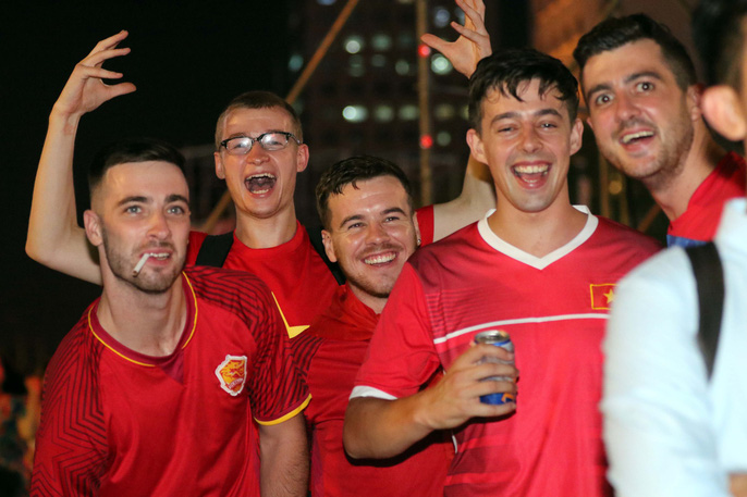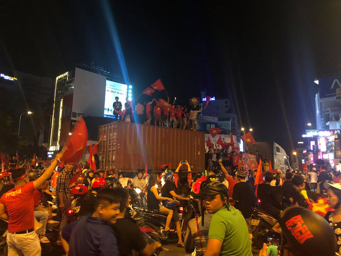 Sau kết thúc 120 thi thi đấu nghẹt thở, chỉ trong một thời gian ngắn, các tuyến đường ở các quận trung tâm đã đông nghẹt người - xe với màu đỏ của cờ, của áo là chủ đạo. Không khí như muốn nổ tung trong tiếng reo hò, tiếng kèn trống.