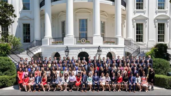 Những hình ảnh chụp các thực tập sinh với Tổng thống Donald Trump trong năm 2017 chủ yếu là các thanh niên da trắng.