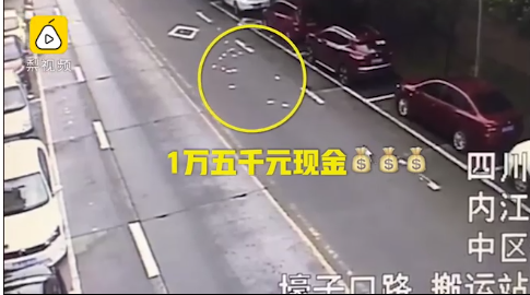 Một người đi xe máy ở Trung Quốc vừa đánh rơi 15.000 yuan (hơn 50 triệu đồng) trên đường và được trả lại toàn bộ, theo Pear Video.
