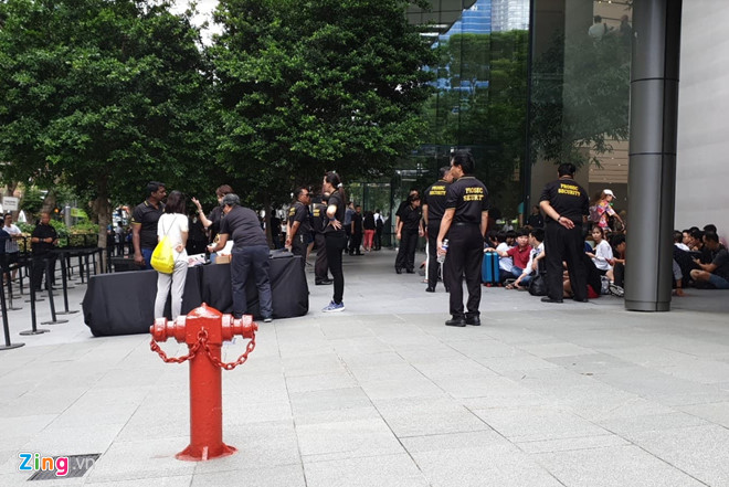 Đến gần trưa 20/9, Apple Store ở Singapore bắt đầu dựng rào, kéo line cho người xếp hàng.