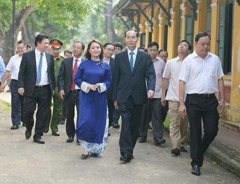 Cùng đi với Chủ tịch nước hôm đó c̣n có Bí thư Thành ủy Hà Nội Hoàng Trung Hải, Thứ trưởng Bộ GD-ĐT Nguyễn Hữu Độ cùng nhiều lănh đạo các Bộ, ban ngành Trung ương và Hà Nội tham dự.