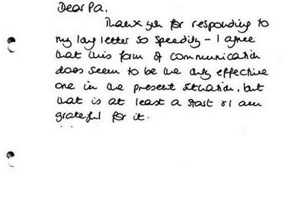 Một trong những bức thư Công nương gửi bố chồng của mình.