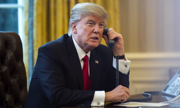 Tổng thống Trump trong một cuộc nói chuyện điện thoại đầu năm nay. Ảnh: Reuters.
