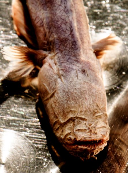 Con cá lạ hình thù “quái dị” có cái đầu giống mặt tinh tinh và miệng có 2 hàm răng sắc nhọn.