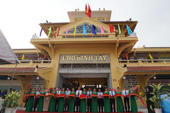 Ngôi chợ gần 100 tuổi ở TP.HCM sau hai năm tạm ngưng và tu sửa đã chính thức mở cửa trở lại. Chợ nằm giữa 4 tuyến đường Tháp Mười - Lê Tân Kế - Phan Văn Khỏe - Trần Bình thuộc quận 6, được xây dựng từ năm 1928, là ngôi chợ lớn và có kiến trúc đẹp nhất ở TP HCM.