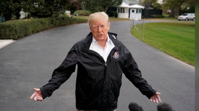 Tổng thống Hoa Kỳ Donald Trump trả lời báo chí trước khi khởi hành đến California