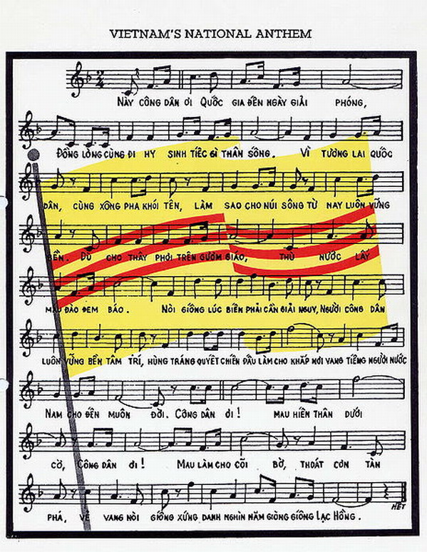Lũ ba-que xứ Nam làm éo gì có ai biết viết nhạc, không ăn cắp thì làm sao có "quốc ca" chứ... Mà chỉ cho có lệ thôi... Địch quân vừa ló là chạy trốn thấy con đĩ mẹ chúng nó rồi thì... "Quốc Ca" con mẹ gì...