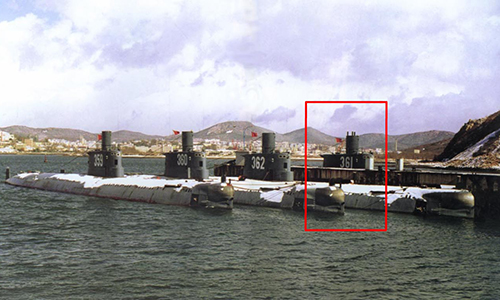 Tàu ngầm 361 (khoanh đỏ) tại căn cứ, Ảnh: Global Security.