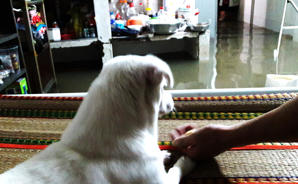 "Mình rất lo lắng không biết gửi những chú chó của mình đi đâu, nước ngày càng dâng cao, mình sợ chúng sẽ bị ngập ướt", bạn Kỳ Nhất Quyền (ngụ quận Thủ Đức) lo lắng.