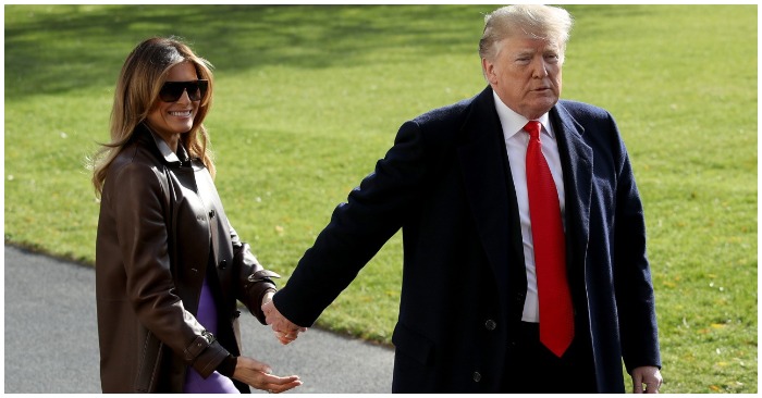 Ông Trump nắm chặt tay bà Melania rời Nhà Trắng lên đường tới dự Hội nghị thượng đỉnh G20 tại Argentina. (Ảnh: BRENDAN SMIALOWSKI/AFP/Getty Images)