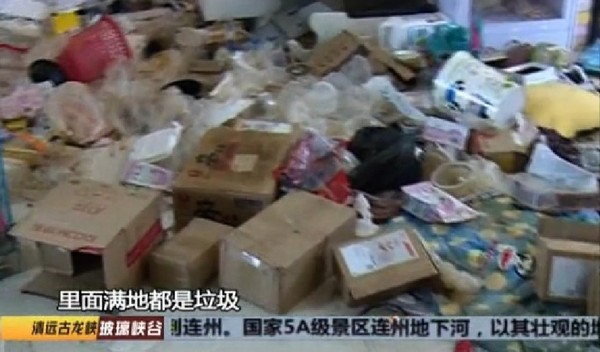 Căn nhà chỉ toàn rác và rác, thậm chí những hộp thức ăn thừa còn có giòi bò bên trong.