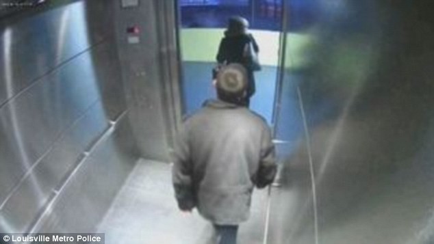 John Ganobick theo chân người phụ nữ vào thang máy.