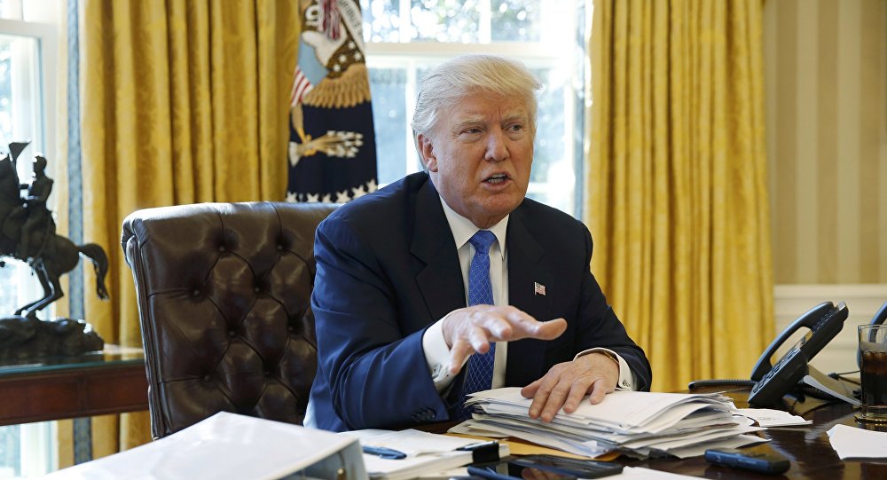 Tổng thống Mỹ Donald Trump trong cuộc phỏng vấn độc quyền với Reuters trong Phòng Bầu Dục tại Nhà Trắng. Ảnh: Reuters.