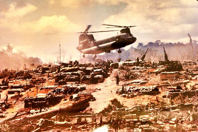 Người phi công gan lỳ của quân đội Hoa Kỳ bay từ hướng Đông với chiếc khu trục Douglas A-1 được trang bị đến tận răng. Anh ta bay qua đầu tôi, khoảng gần 50 thước, ngay bên trên phía nam cánh đồng mía và nói chuyện thẳng với tôi qua tần số FM. Tôi có thể nhìn thấy anh đang nhìn thẳng xuống cánh đồng mía. “Đốt cháy nó”, tôi la to. Bay thật thấp và thật chậm theo cỡ trên đầu ngọn cây, phi công có thể nhìn thấy đang quan sát thật rõ tình hình bên dưới. Rồi, anh bay vòng lại, và bắt đầu cuộc oanh kích đầu tiên, thả trái bom napalm. Nó phát nổ với một vòng cầu lửa màu trắng vàng, biến đổi cánh đồng thành một bức tường lửa. Các lằn đạn màu xanh từ cây súng 51 ly do bọn Trung Cộng chế tạo đã được nhìn thấy bắn theo chiếc A-1. Chiếc Skyraider thứ nhì đang bỏ trái bom napalm trong lần thả đầu tiên. Tôi có thể nghe và thấy được tiếng động của những tiếng nổ lốp bốp và những cái đầu của quân địch nhô ra từ đám lửa nóng cháy, và đám lính địch la hét trong sự kinh hoàng. Quân Bắc Việt đang tập trung trong cánh đồng mía đã bị đốt ra tro. Áp lực của quân địch tại tuyến phòng thủ bên tay mặt tôi coi như không còn nữa.
