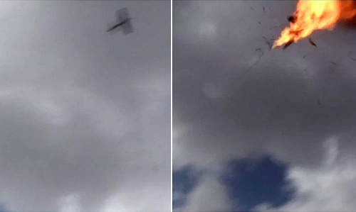 Khoảnh khắc máy bay không người lái phiến quân phát nổ khi tấn công đoàn duyệt binh. Ảnh: SCMP.