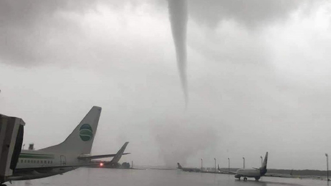 Vòi rồng tiến đến sân bay Antalya ngày 26/1. Ảnh: RT