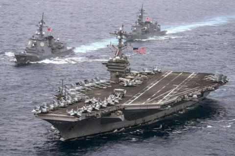 Tàu sân bay Mỹ tập trận cùng tàu chiến Nhật Bản