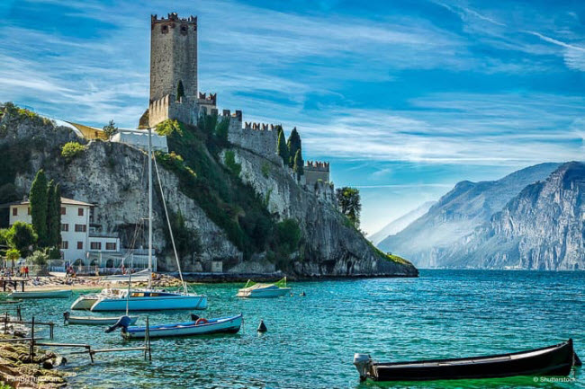 6. Hồ Garda: Đây là hồ nước ngọt lớn nhất ở Italia với diện tích lên tới hàng trăm km2. Hồ có nước rất trong và được bao quanh bởi những ngọn núi cao, các ngôi và thị trấn nhỏ cùng bãi tắm hoang sơ.