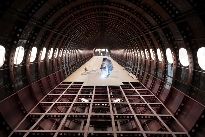 Một kỹ sư Trung Quốc Zhu Yue và các bạn đang chế tạo một bản sao kích thước đầy đủ của chiếc Airbus A320 tại tỉnh Liêu Ninh. Ảnh: Reuters