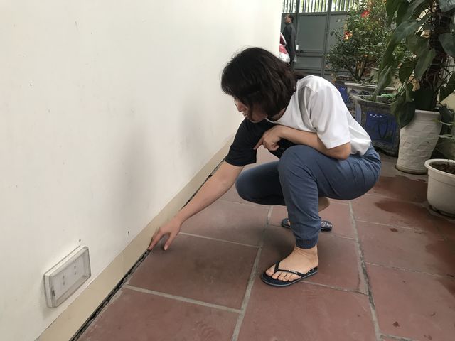 Sống trong căn nhà bị rạn từ tầng 1 đến tầng 4, ông Bưởi ngao ngán: "Cuộc sống của chúng tôi bị ảnh hưởng nghiêm trọng. Mùi hôi nhà vệ sinh thoát ra ảnh hưởng đến những người xung quanh. Nếu nó sụt xuống nữa thì tính mạng con người sẽ bị ảnh hưởng".