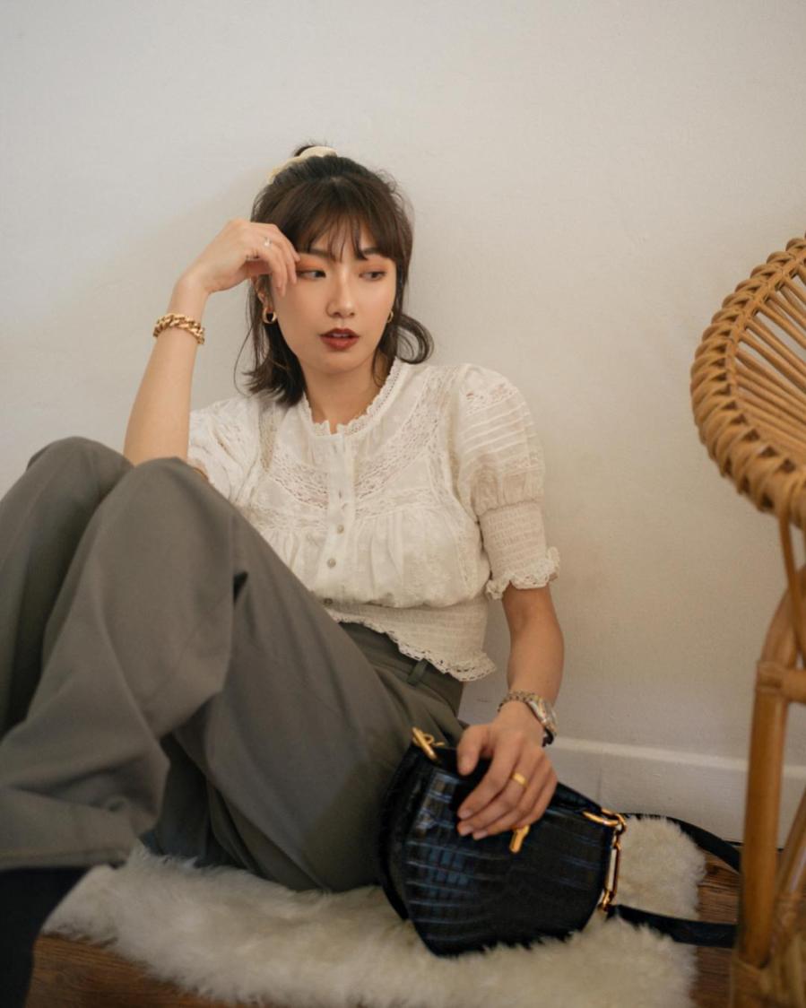 Thay vì thế, áo sơ mi/blouse kết hợp với quần âu, khaki, jeans đen/trắng ống đứng hoặc ống rộng... sẽ là lựa chọn thanh lịch tuyệt đối.